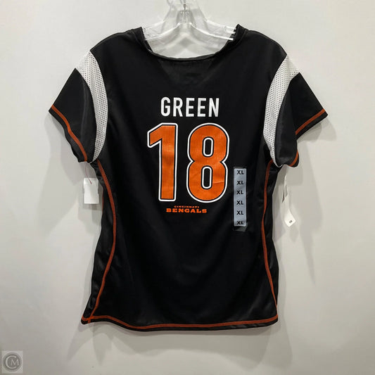Athletic Top Short Sleeve By Nfl In Black & Orange, Size: Xl